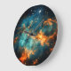Stylish cosmic galaxy clock. Striking wall art Clock in various shapes and sizes. Beautiful world amongst the stars with cool green blue tones and a warm pop of vibrant yellow and orange shades.