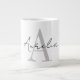 Elegant, stylish gift giant XL coffee mug with your custom name and monogram in a trendy hand lettered script calligraphy design in minimalist dusty charcoal and black, this typography driven design makes a great gift for coworkers, teachers, coaches, girlfriends, wives, daughters, or any other work or family member!