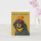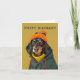 This captivating digital illustration features a stylish dachshund dressed in a cozy winter outfit. The adorable dachshund, adorned in a bright orange beanie and jacket, exudes personality and charm. Perfect birthday card to Dachshund lovers.