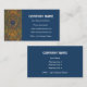 A stylish business card with an abstract pattern of swirls in shades of orange, yellow and green, with white lettering on a dark blue background. Ready for you to customise with your own details.