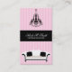 Designer business cards featuring a stylish sofa and a beautiful chandelier.