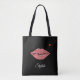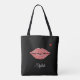 Stylish diamond lips, calligraphy & heart on black tote bag