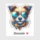 This stylish dog portrait features a fashionable pup wearing sunglasses and a colorful bow tie, illustrated in a vibrant modern art style. The design combines personality, elegance, and playful charm, making it perfect for dog lovers and fans of contemporary pet art.