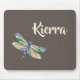 Stylish Dragonfly in Brown and Blue With Name Mouse Mat