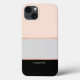 Easily personalize this modern minimalist color block striped pattern iPhone case. Add your name, monogram or initials. Features elegant and stylish color design with feminine rose gold stripes.