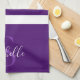 This simple, modern design features a dark royal blue purple striped pattern with white in between. The design features a larger blueish purple block with an elegant initial and script name monogram. Personalise your kitchen with your own personalised hand towels.