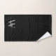 Stylish Girly Feminine Modern Black and Grey Monogram Initial Name Signature Script Custom Personalised Hand Towel. Featuring a first name (or family name) in a pretty hand lettered style swash tail font typography (or calligraphy) with monogram initial in grey and white on black. Great stylish feminine housewarming gift, also for birthday, wedding, bachelorette party, mother’s day, bridal shower, sweet 16 birthday party, anniversary gift and for graduation party and It’s for the girl who likes stylish elegant things.
