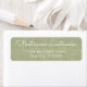 Chic simple address return label with a pretty, trendy and modern script font on a sage green colored fabric looking background to embellish your mail and envelopes with. Customize or personalize with the family name and address of your choice.