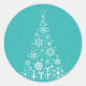 Stylish elegant white and teal Christmas tree Classic Round Sticker