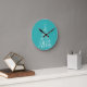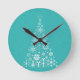 Stylish elegant white and teal Christmas tree Round Clock