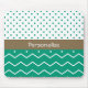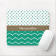 A trendy mousepad with emerald green chevrons and polka dots against a white background. Personalise by adding your name to this hot fashion trend of 2013.