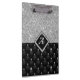 Modern clipboard for your fabulous sketches or designs. With elegant girly silver faux glitter bling, Tuffted black faux rhinestones design. This stylish cute design would be great for girls who enjoy sparkly designs. Show off your personal style, look fashionable, trendy and feel stylish around your friends with a unique design on your clipboard or customise it over another product of your choice.