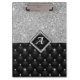 Stylish faux Crystal Silver black diamond monogram Clipboard
