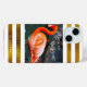 I love how flamingos stand out from all other birds. “Dare to be different” whenever you use this stylish, stunning photography cell phone case of a bright orange pink flamingo sunning itself on a warm summer’s day, against a background of simulated gold foil and white stripes. Makes a great gift for someone special!