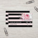 Elegant floral striped business card design for a makeup artist, event planner, hairstylist, florist, nail technician, beautician and more.