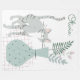 Pretty drawing of a grey kitty cat standing next to a beautiful vase of flowers and plants in teal, personalised with your name.
