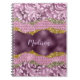 Make back to school fun with this Cute personalised Notebook. It is designed with elegant girly floral design in purple, pink and faux rhinestones and faux gold glitter.