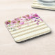 Shimmery gold stripes as a backdrop with pink pastel water colour flowers draping down from the top creating elegant flowery chic vibes.