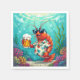 A cheerful shrimp wearing sunglasses and a floral shirt enjoys a frothy beer underwater, surrounded by colourful coral and seaweed