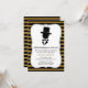 A stylish chic black and gold baby boy shower invitation! It features a simple silhouette design to outline the sharp look of a gentleman which includes a top hat, bow tie and tuxedo. The background is that of a black and gold stripes pattern. Unique and outstanding for a baby shower invitation. Personalise easily with your party details.