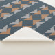 A cosy, modern aztec kilim style geometric pattern in bold, rich colours of navy, faux copper, and grey.