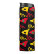 Stylish Geometric Triangles Monogram Thermal Tumbler, in black, green, yellow and red. The monogram is CUSTOMIZABLE, so you can add your initials. This ethnic geometric pattern consists of triangles, lines and circles, and is used for a range of gifts, including this geometric tumbler for Back To School gift sets.