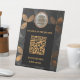 Stylish gold black business tabletop sign template. You can easily customise it with your company logo, QR code and texts. Great for a restaurant, coffee shop or any business.