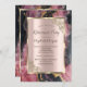Elegant gold floral frame on gold glitter, black and burgundy marble background.