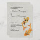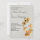 A wedding invitation with an illustration of a pair of gold koi fish swimming together.