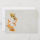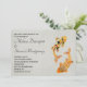 An elegant wedding invitation with an illustration of a pair of gold koi fish swimming together.