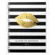 Stylish Gold Lips with Classic Black White Stripes Notebook