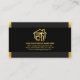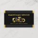 A dark grey and black cover is encapsulated by gold tabs at the corners of the card. It features a creative gold handyman motif which can represent some of the services that you might offer. Over at the top is the business name with the contact details near the base of the card.