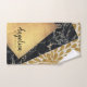 Stylish Gold Teardrop Paint Black Marble Monogram Hand Towel