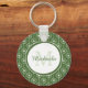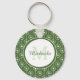 Stylish Green and White Hearts Monogram With Name Key Ring