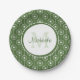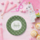 Stylish Green and White Hearts Monogram With Name Paper Plate