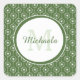 Stylish Green and White Hearts Monogram With Name Square Sticker