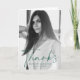 Simple and modern graduation thank you card featuring the graduate's vertical photo with "Thanks" in a stylish green script overlay. Personalise the front of the photo graduation thank you card by adding the graduate's name and graduation year. The inside of the folded thank you card displays a hand-drawn green and white pattern on the left with space for your typed or handwritten message on the right.
