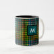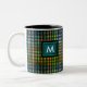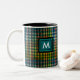 Stylish Green Tartan Scottish Pattern Monogram Two-Tone Coffee Mug