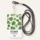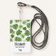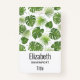 Personalised name badge with a pretty pattern made up of green tropical leaves. Exotic and stylish design.