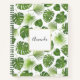 A personalised spiral notebook with a pretty pattern made up of green tropical leaves. Exotic and stylish design.