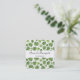 Business cards with a pretty pattern made up of green tropical leaves. Exotic and stylish design.