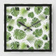 Stylish Green Tropical Leaves Pattern Square Wall Clock
