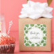 Party thank you stickers with a pretty pattern made up of green tropical leaves. Exotic and stylish design. A white circle with a faux gold foil border layered over top with your text inside.