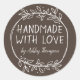 Stylish Greenery Handmade With Love Name Brown Classic Round Sticker