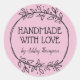 Stylish Greenery Handmade With Love Name Pink Classic Round Sticker