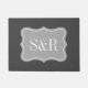 Stylish grey and white chic name monogram door mat. Make your own custom monogrammed indoor / outdoor doormat with custom background colour and text. Add your own elegant welcome message, family name, surname, initial letter or funny quote. Cute personalised gift idea for new home / housewarming, wedding venue, store, shop, company office, business etc. Stylish script typography. Personalizable template. Create your own classy entry mat / rug for front door / entryway or hall. Customisable home decor / decorations for your chic house. Cute gift idea for couple or newly weds. Available in small and big extra large size.