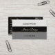 Make a lasting impression with this stylish business card design featuring light and dark grey stripes on black with pretty shimmery small gold decor.
