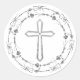 Stylish Grey Cross Boho Wreath Baptism Classic Round Sticker
