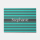 Stylish Grey Teal Stripes White Custom Name Doormat