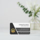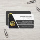 Overleaf, in a grey cover, card details are on the left. At the top is the gold logo followed by your prestigious name and the contact details.
